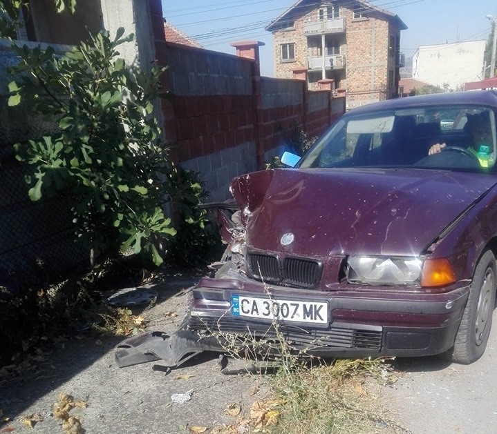 След удара лекия автомобил БМВ се отклонява и се блъска в стълб на уличното осветление, след което се спира в оградата на къща.