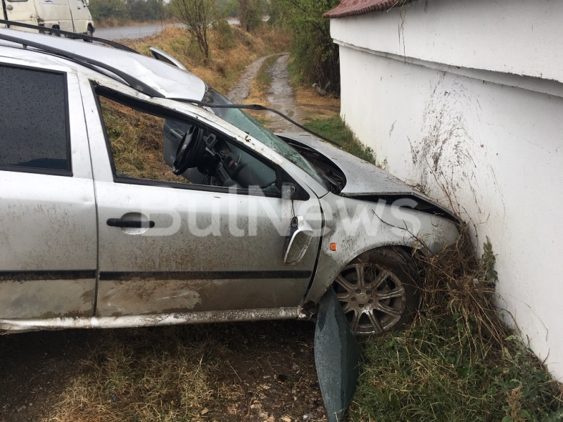 Инцидентът е станал преди минути. Млад шофьор шофирал „Шкода Октавия“ в посока Враца. На коварния завой точно преди комплекса обаче колата се поднесла на мокрия асфалт. Тя се завъртяла и навлязла в насрещното, след което се забила в оградата на "Вичов хан".