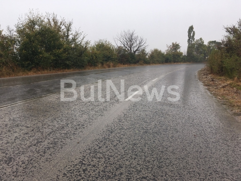 Колите са извън пътното платно и не пречат на движението. Асфалтът обаче е мокър от дъжда и е хлъзгав. Водачите трябва да се движат с повишено внимание.