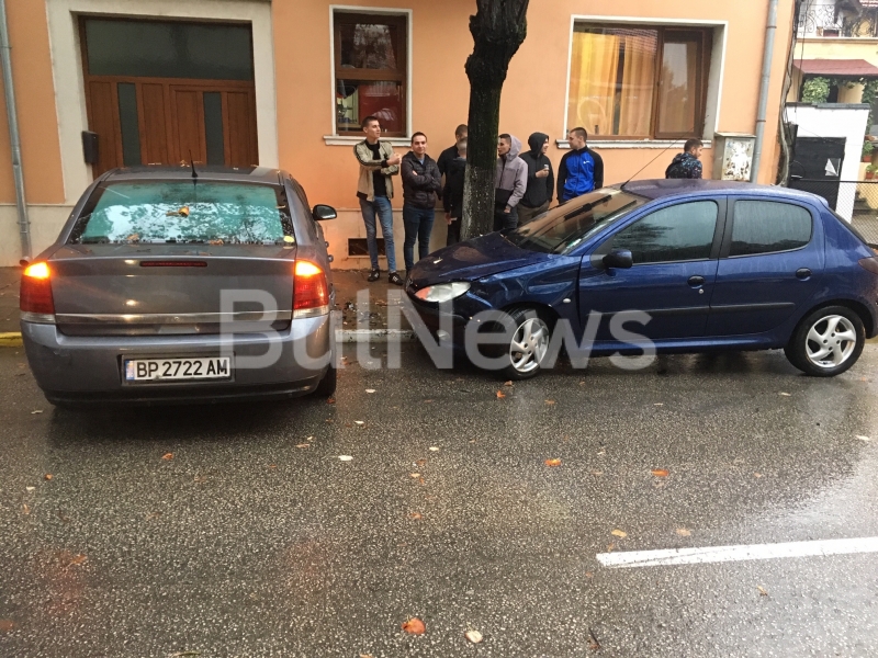 Странна катастрофа! Две коли се удариха на централна улица във Враца, по чудо няма жертви /снимки/