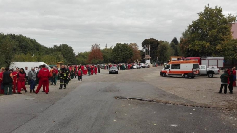 Евакуират работниците, има няколко пожарни и линейка на мястото. Има опасност от експлозия в завода. Горящият цех е мястото, където се завършва окомплектовката на бомбите.
