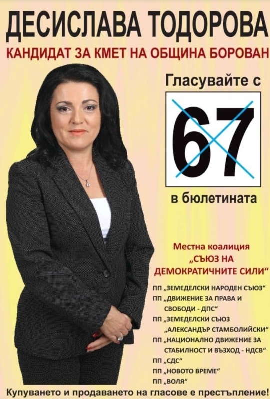 Отново заставам пред вас с лицето си, искайки вашата подкрепа за трети мандат, защото властта е на хората и само в името на хората. Смело твърдя, че в двата си мандата съм била и ще бъда една от вас! Управлявате Вие, а не един човек! Разчитам на вашата подкрепа за да продължим заедно напред в името на община Борован, защото „ЗАЕДНО МОЖЕМ ПОВЕЧЕ“!