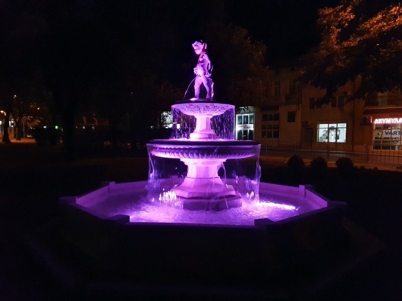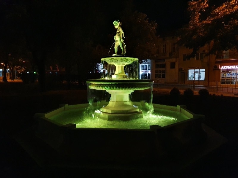 Статуята краси китната градинка на площад „Руски“ във Враца вече от няколко седмици. От снощи обаче тя е още по-впечатляваща. На шадравана е монтирано разноцветно осветление, което го прави изключително красив и през нощта.