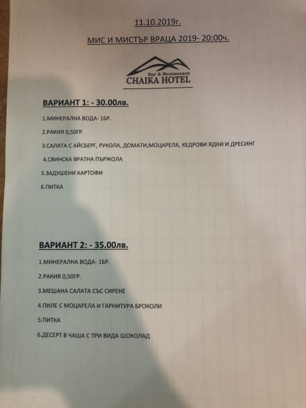 Днес ресторант „Чайка“ ще посрещне гостите на конкурса „Мис и Мистър Враца 2018“ със специално меню и специален гост, научи агенция BulNews. Шефът на „X MODEL GROUP“ Ивайло Йосифов организира в хитовия хотелски комплекс надпреварата за най-красивите млади врачани, като дамите ще имат шанс да представят града ни на „Мис България“.