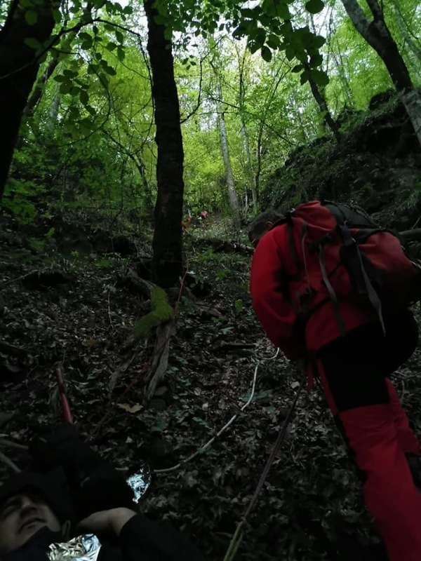 В него се съобщавало за паднал от водопад със счупен крак между хижите „Конгур” и „Беласица” в едноименната планина. „Били са двама единият от които се хлъзнал и паднал от водопада, неговия приятел го търсил доста време преди да подаде сигнала. Веднага от отряда тръгнахме натам. През това време полиция, пожарна и двама колеги планински водачи, както и хижарите от хижа „Беласица” тръгнали да ги издирват. Намерили ги в много недостъпна скалиста местност. Пострадалият бил паднал от около 15 метров водопад и си счупил крака на две места. По насоки на колегите и пожарникарите около 4:00 часа бяхме при тях. Мъжът бе имобилизиран, облечен и поставен в носилката. След като видяхме терена, по който нямаше никакъв шанс за транспорт надолу трябваше да искарваме пострадалия нагоре по склона с денивелация 600 м. И наклон на терена над 45 градуса, сипеи и скали. Обадихме се за помощ, тъй като с наличните хора нямаше как да го изнесем”, разказват планинските спасители.