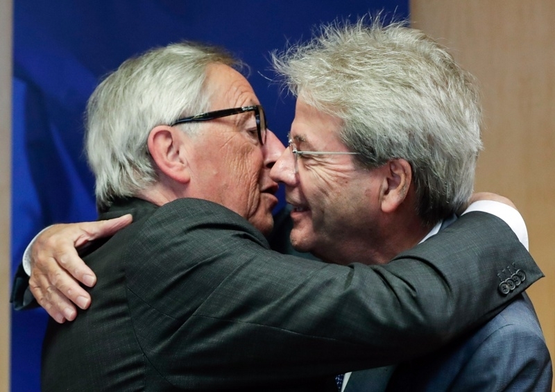 Председателят на ЕК Жан-Клод Юнкер пак е в обективите на камери и фотографи. Днес той посрещна в централата на комисията новия еврокомисар по икономика Паоло Джентилони, но излезе от стаята си по доста странен начин-олюлявайки се и правейки странни гримаси.