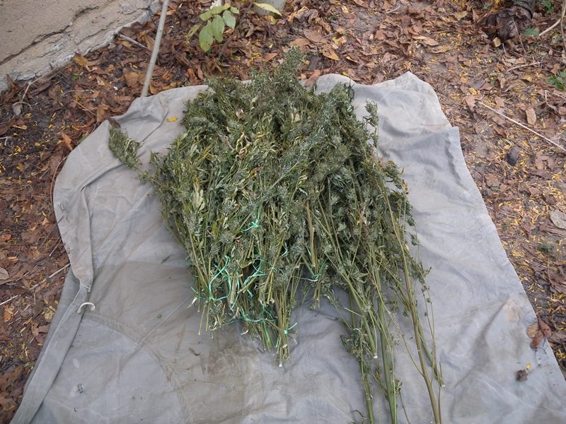 При извършеното претърсване разследващите установили и иззели 312 сухи растения с общо тегло 42 кг. Листната маса реагирала на канабис при полевия наркотест. Иззети били още раница, ръкавици, чували, лозарски ножици, намотка тел и свински опашки.