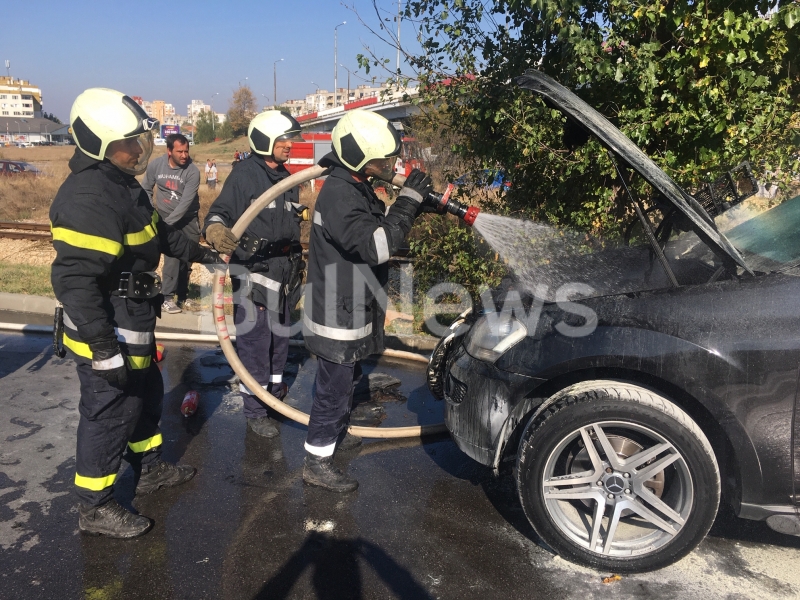 Екип на огнеборците се отзовал за броени минути. В момента служителите продължават да се борят с пожара. Пламъците са загасени, но двигателят на автомобила още пуши.