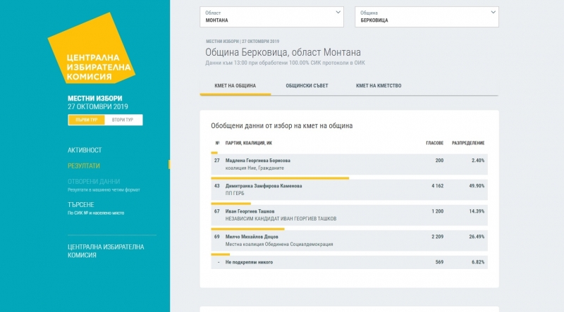 569 от гласувалите в Берковица са отметнали в бюлетините си, че не подкрепят никого.