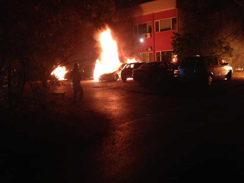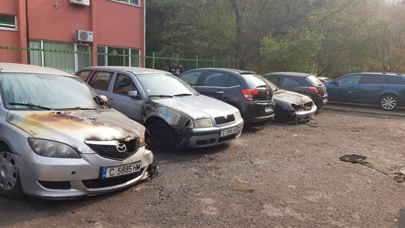 Палеж на автомобили в София - снощи са били опожарени 11 паркирани леки коли в столичния квартал „Хиподрума”. Снимки от инцидента са публикувани във Facebook групата „Забелязано в София”. Пристигналите на мястото пожарникари са успели да овладеят огъня.