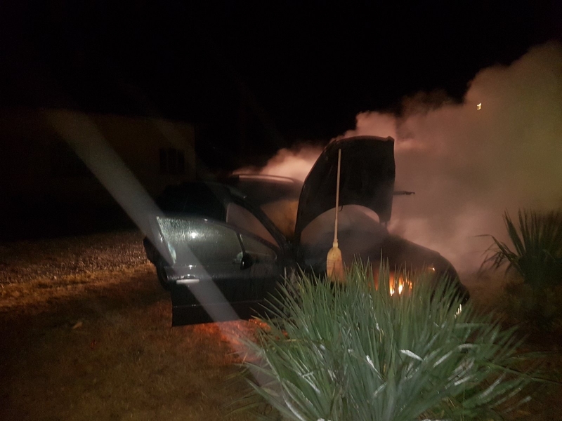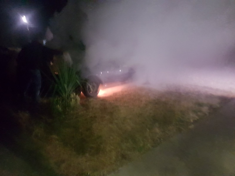 Секунди преди возилото да избухне в пламъци се чул силен пукот, а след това пламъците обхванали колата. Въпреки опитите пожарът да бъде потушен, возилото изгоряло напълно.