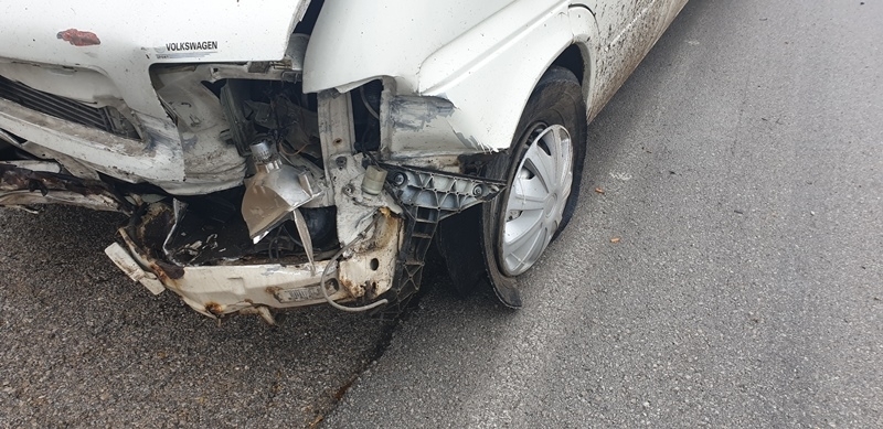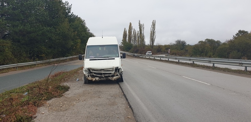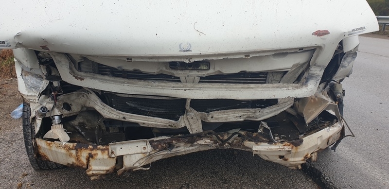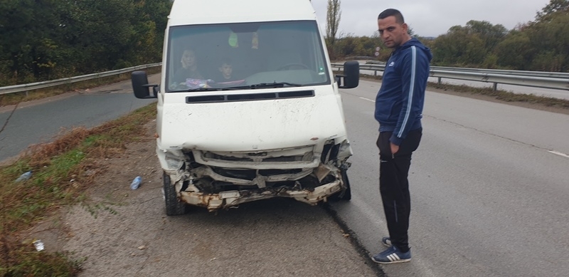 Нанесени са обаче сериозни материални щети по превозното средство. Цялата предница на буса е смачкана.