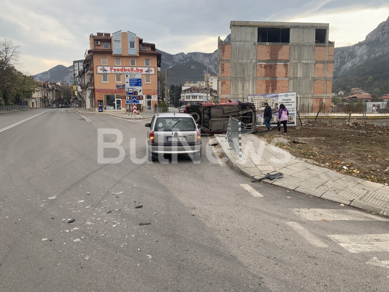 Извънредно! Тежка катастрофа насред Враца, момиче удари „Рено“ и го обърна на пътя /снимки/