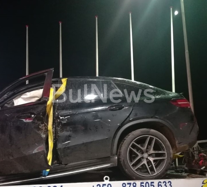 По лъскавото возило ясно се виждат сериозните материални щети, причинени от зверския сблъсък. Цялата предница на джипа е смазана до неузнаваемост. Джантите на автомобила са изкривени, а аербеците са се отворили. Предницата на ТИР-а също е сериозно смазана.