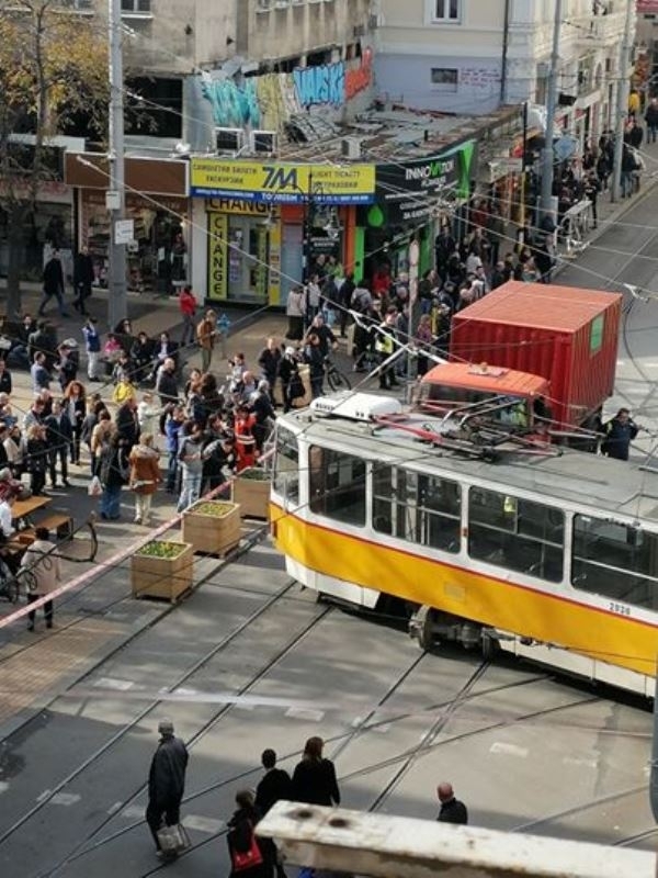 Трамвай блъсна жена до Съдебната палата в София /снимки/