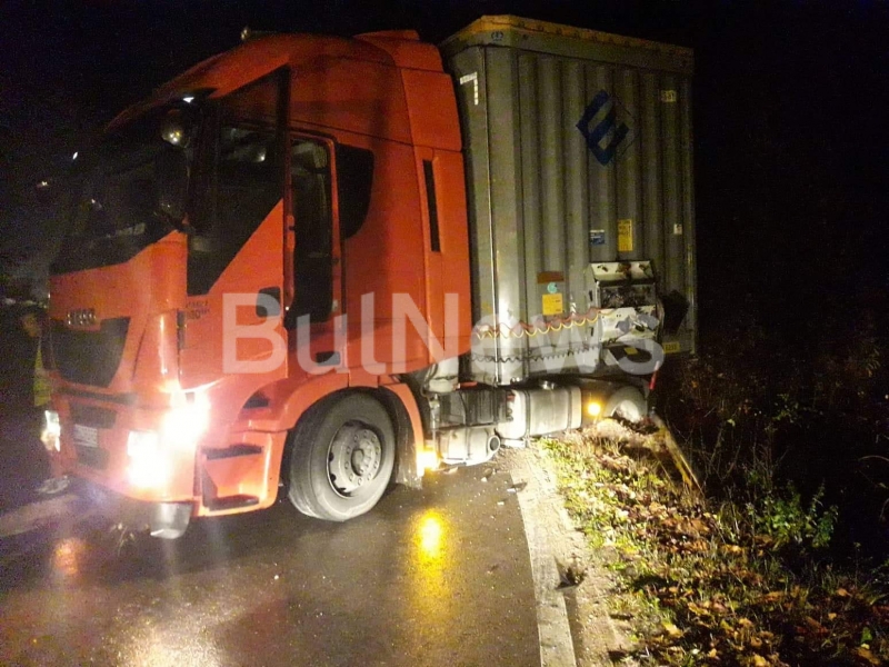 Среднощна каскада! Румънски ТИР изхвърча от Е-79 между Видин и Монтана /снимки/
