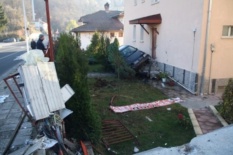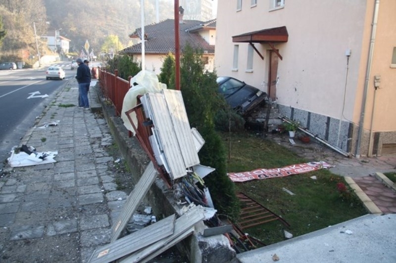 По пътя си е олющил първата сграда, счупил парапета на втората и ел. захранването й, преди да обърне посоката на движение и да се строполи върху входа на третата къща. Автомобилът "Фолксваген Поло" буквално е заприщил входа й.