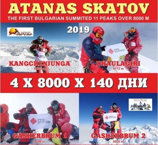 • 4 върха над 8000 м в една календарна година, само за 140 дни;