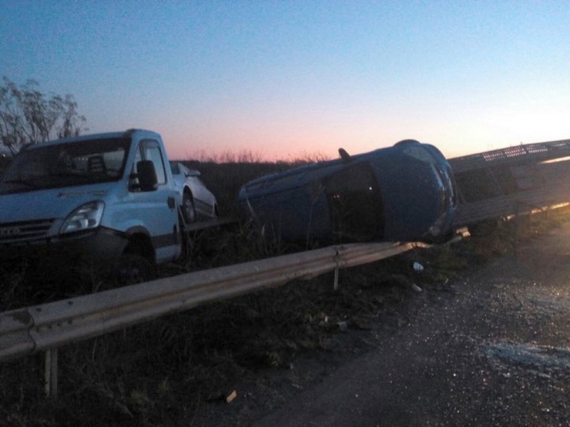 Инцидентът е станал около 5.24 часа при ляв завой, при който водачът губи контрол и обръща автовоза странично.
