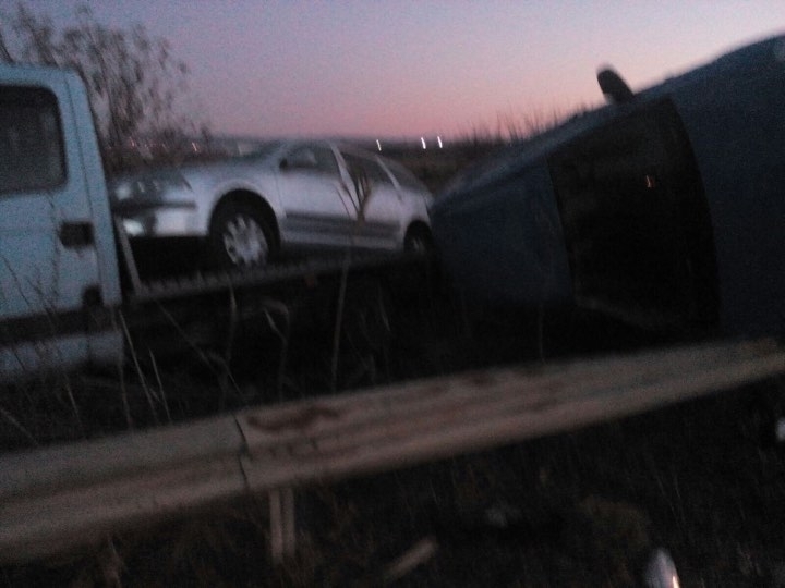 Автовоз, превозващ три коли, се е обърнал тази сутрин по пътя Бургас-Сарафово, в района на магазин-аутлет.