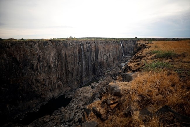 Водопадът, който е на границата между Замбия и Зимбабве, е пресъхнал почти напълно. Някога оглушителният порой от разпенена вода и тътенът наоколо почти е изчезнал. Вместо него, след като водата спадна наполовина и достигна най-ниското ниво от 40 години, под скалите се виждат няколко невзрачни езерца.