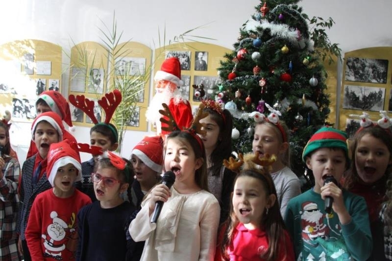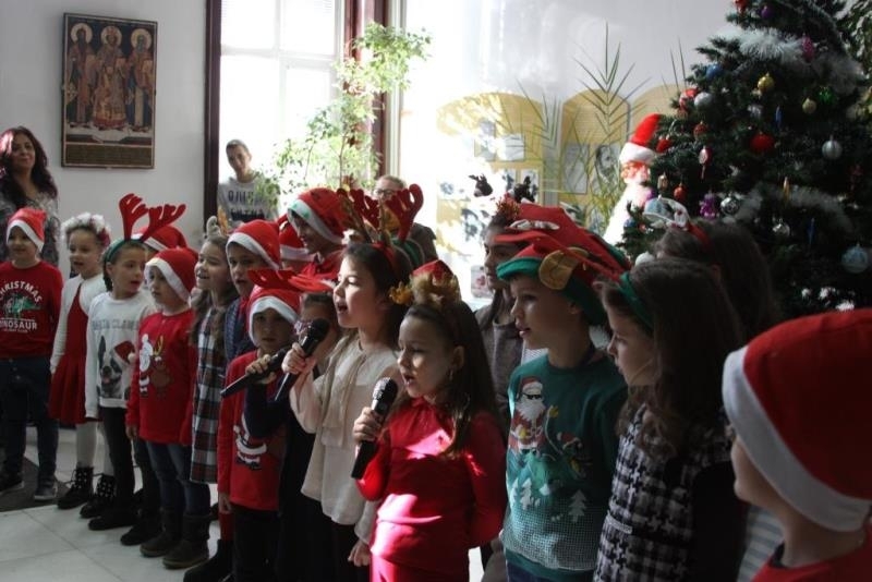 Празнична програма с участието на вокална група „Весели звънчета“ с ръководител Веселка Александрова и малките джудженца от 1.а и 1.б клас с класни ръководители Нели Христова и Лена Каменова постави началото на коледните и новогодишни тържества в училището.