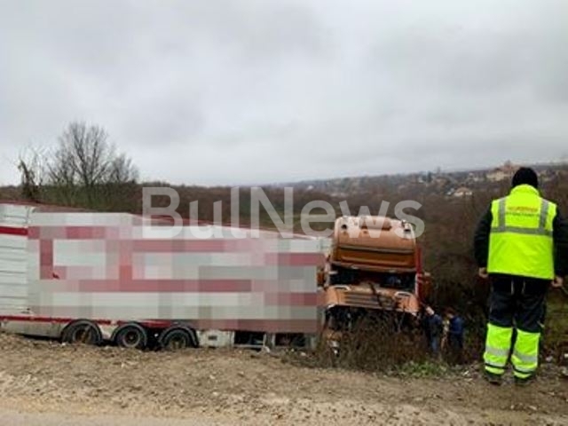 Румънският камион е пътувал в посока към Дунав мост 2, когато шофьорът е загубил контрол над голямата машина и е изхвърчал в дере край пътя. За щастие при катастрофата няма жертви и сериозно пострадали.