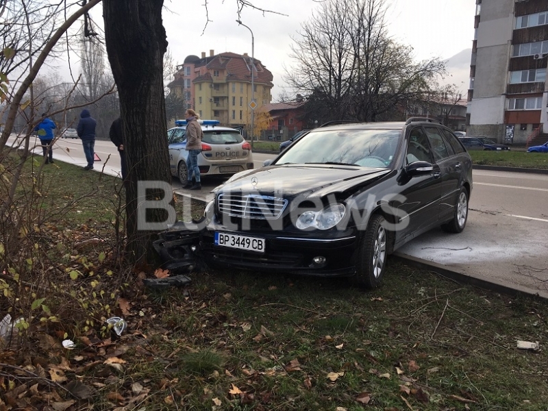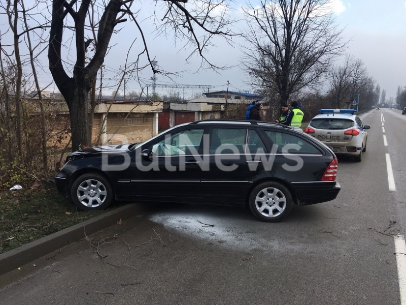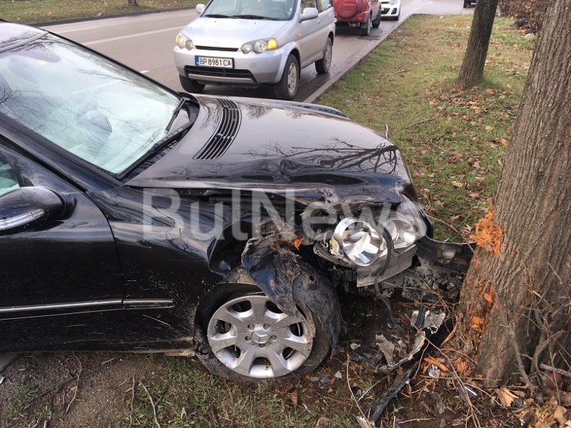 Млада жена е размазала „Мерцедес“-а си в дърво на възлов булевард във Враца, видя първо репортер на BulNews.