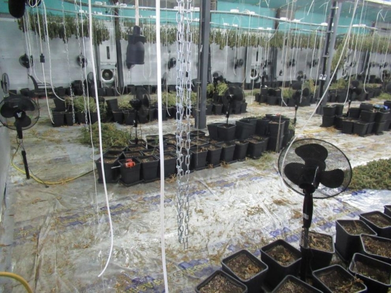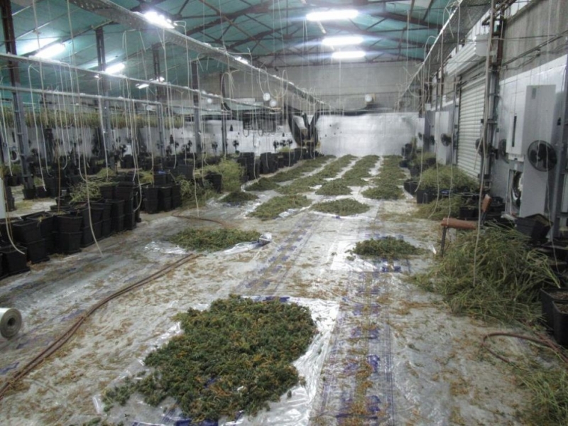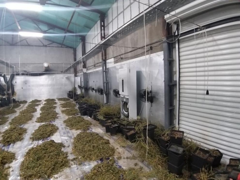 В хода на извършените действия по разследването в две халета и административна постройка са открити 1 743 саксии, цялостно изградена система за поливане, отопление и вентилация, както и над 140 килограма суха тревна маса, която при извършен полеви тест реагира на марихуана.