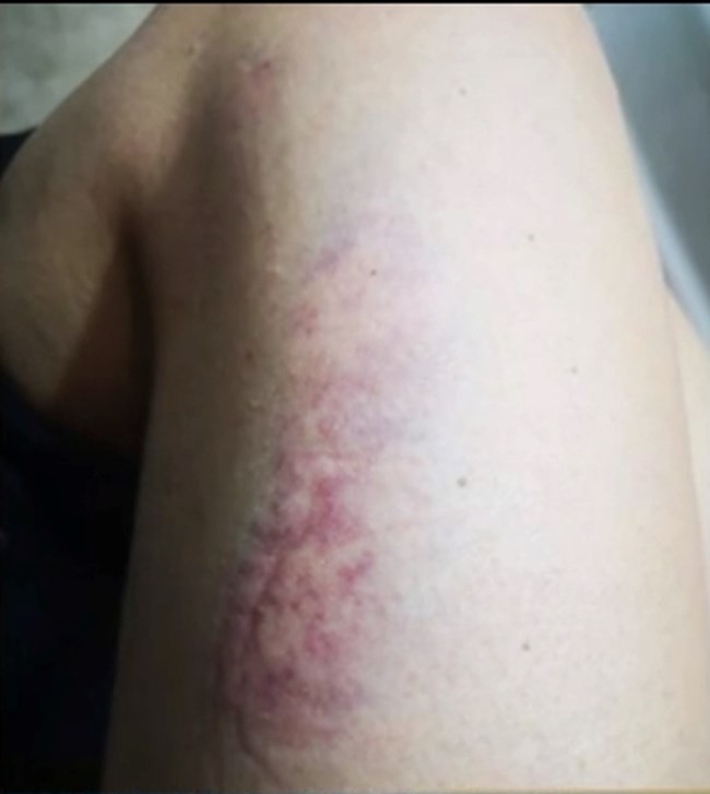 Оградата се стоварва върху нея, когато се прибира заедно с дъщеря си. Майката успява да предпази с тялото си детето и да го избута. Оградата се стоварва върху нея и тя едва успява да се измъкне изпод тежкото съоръжение. Тялото ѝ е в хематоми от лявата страна.