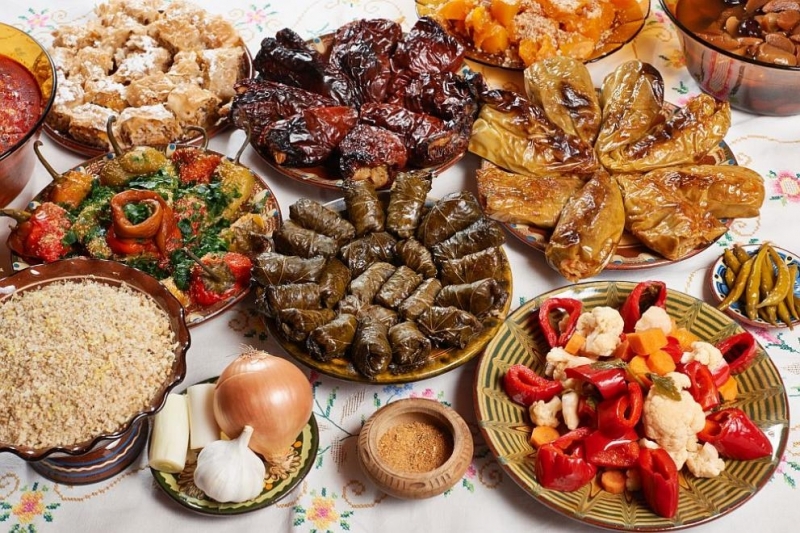 По традиция на трапезата ястията задължително трябва да са постни и да бъдат нечетен брой - 7 колкото са дните на седмицата или 9 колкото трае бременността на жените. Има райони в България, където на празничната маса се поставят 11 или 12 ястия - колкото са месеците в годината. Те представляват сарми, варено жито, чушки, мед, баница с тиква, ошав, вино и др. Всяко от ястията на трапезата има важна за българина символика.