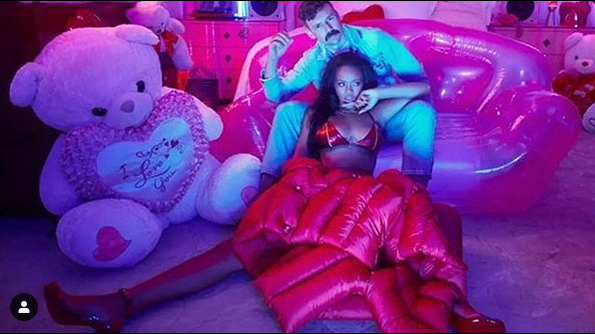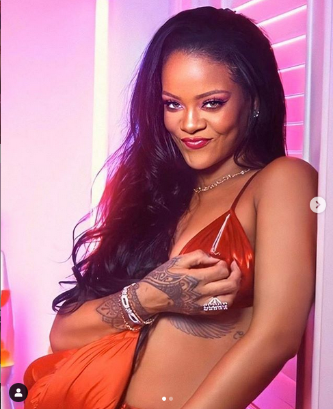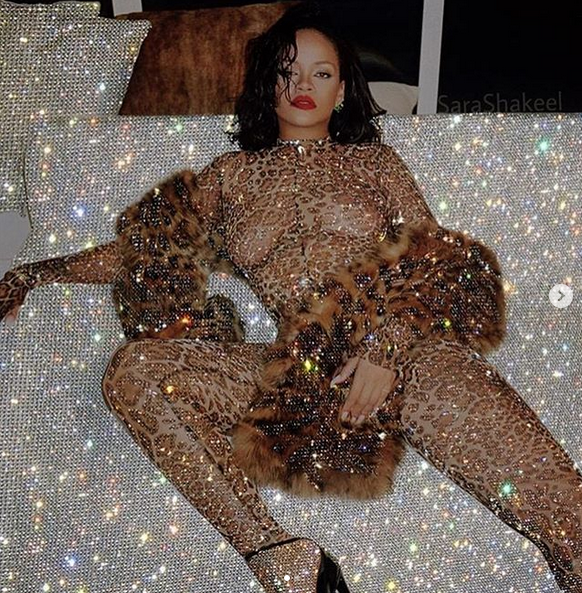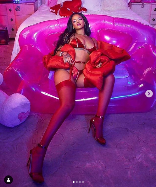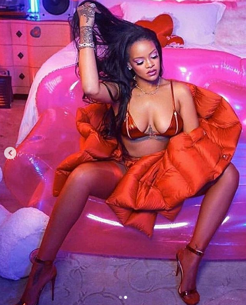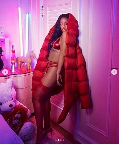 Риана, чието пълно име е Робин Риана Фенти – добави към провокативната си визия червени чорапи, а високите токчета направиха певицата още по-неустоима.