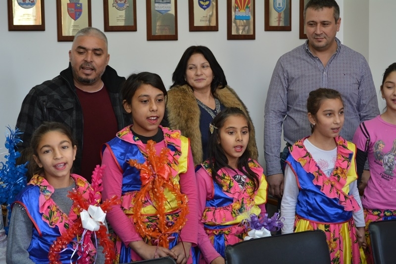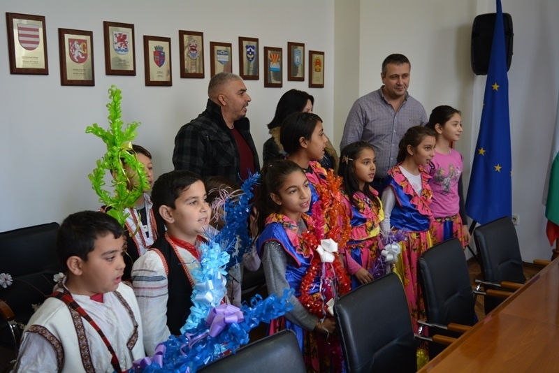 Момичета, пристигнаха пременени с лъскави пъстри рокли, а момчетата с български носии. Всички те учат в начално училище „Георги Бенковски“ в ромския квартал "Кошарник" и обичат да пеят и танцуват. След месец тяхната група ще участва на ромски фестивал в румънския град Крайова. Децата сурвакаха заместник кмета за здраве и берекет и бяха изпратени с паричка и подарък от общината.