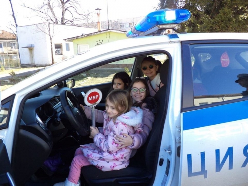 Служителите на реда представиха пред децата най-безопасните начини за пресичане в различни ситуации – на пешеходна пътека, при липса на пешеходна пътека, пресичане между коли, пресичане през нощта и т.н. Най-впечатлени обаче първокласниците бяха от поканата, отправена от полицаите към тях, да излязат заедно на двора, където ги очакваха два служебни полицейски автомобила.