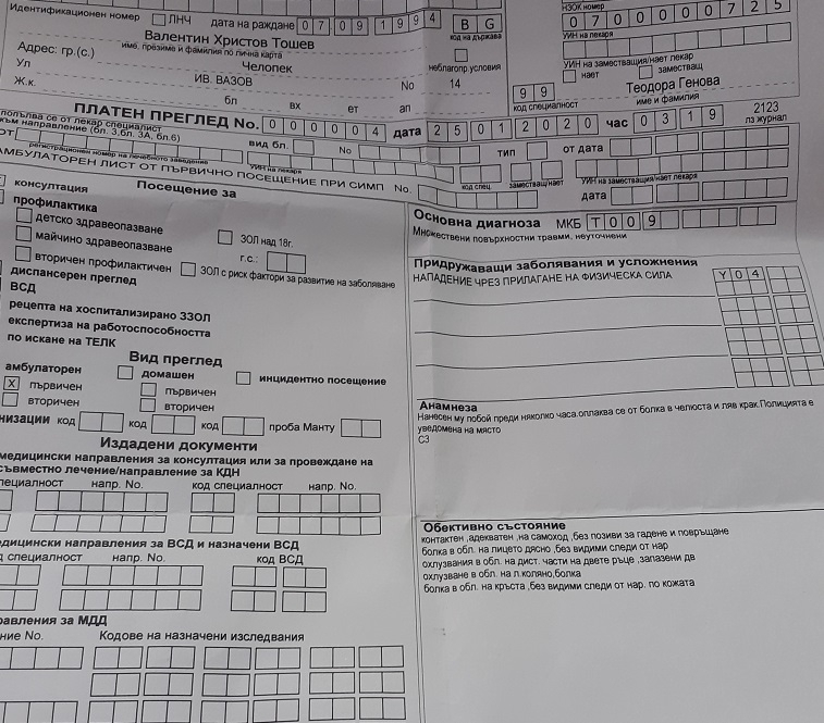 Валентин е подал жалба в полицията и си е извадил медицинско, с което да докаже нападението. Според него обаче няма да има развитие по случая му тъй като хулиганът Любчо е доносник на полицията и това не е първата му криминална проява, която ще покрият.