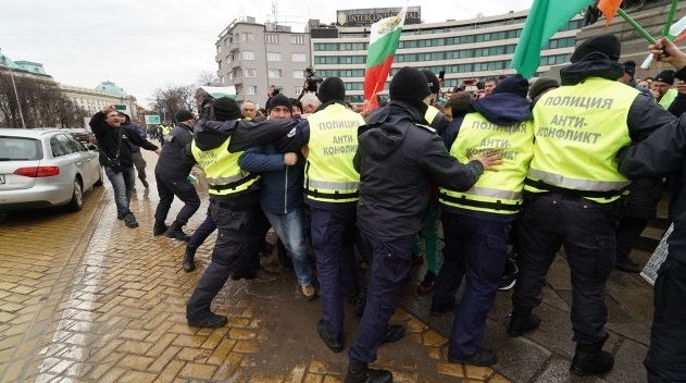 Протестиращите скандираха за оставка и от парламента поеха по "Цар Освободител" към Министерския съвет. Стигна се до сблъсък с полицията. Движението по централния булевард е спряно.