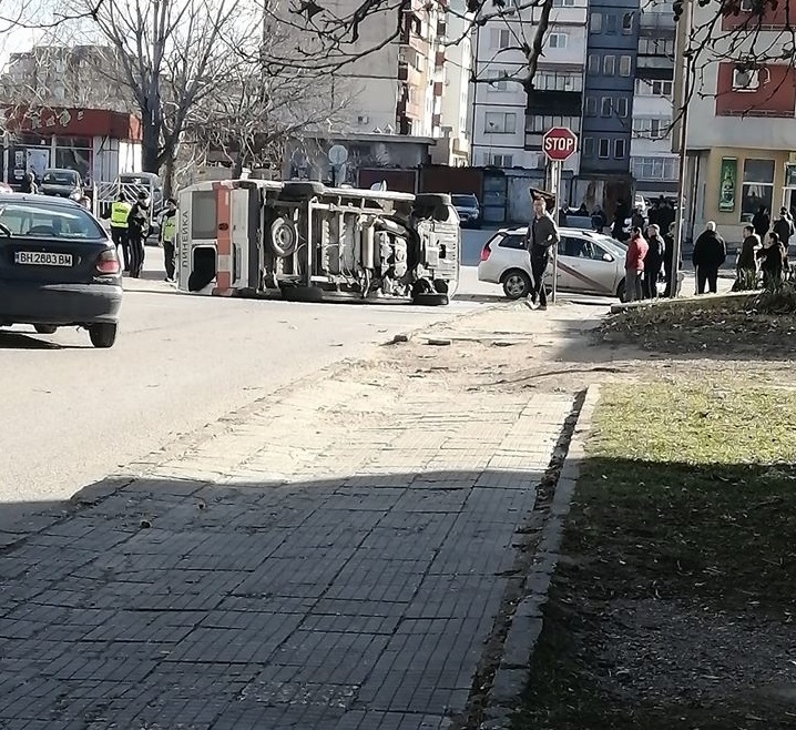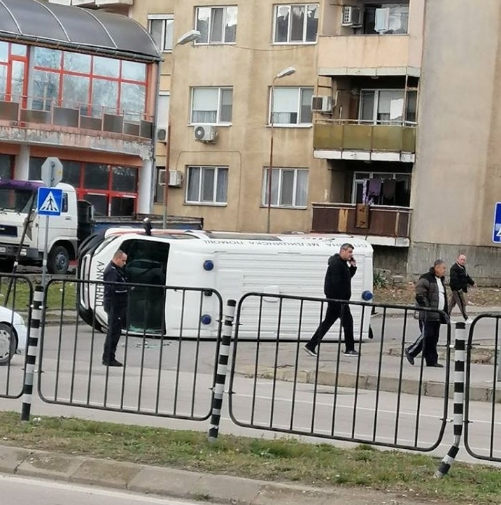 Извънредно! Страшна катастрофа във Видин, линейка се обърна на централен булевард /снимки/