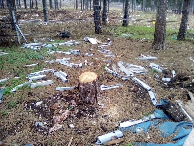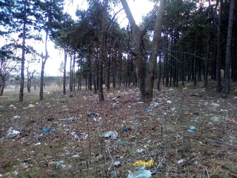 Безобразията на наглеците не спират само с боклуците, които са разпръснали навсякъде. Значителен брой дървета в околността също са били нерегламентирано отсечени. Стърчащите от земята дънери свидетелстват за грозната сеч.