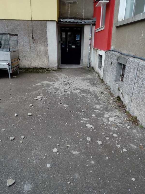 На снимките ясно се вижда, че блокът буквално се разпада и от него се е срутило голямо количество мазилка. Чист късмет е, че до момента няма пострадали хора.
