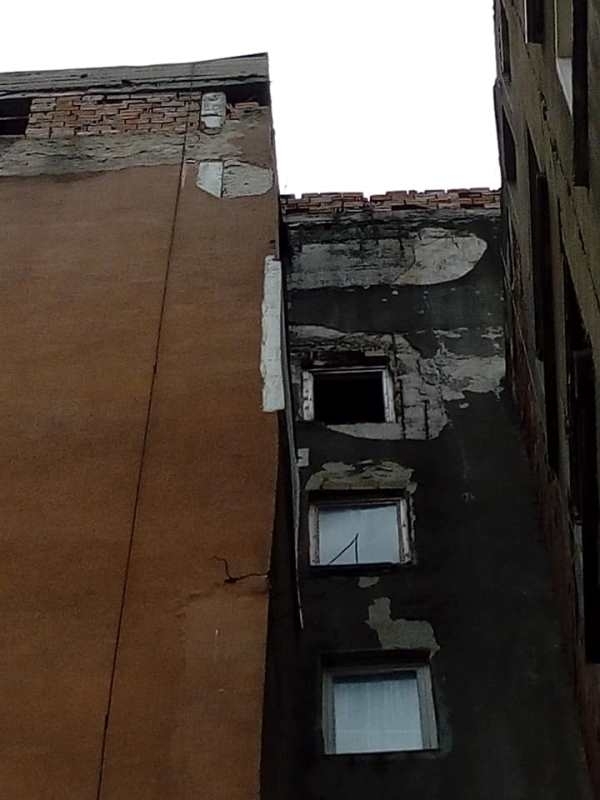 С нехайството си те застрашават не само собствените си животи, но и тези на останалите преминаващи хора. Най-вероятно живущите там вече са свикнали да се пазят от падащите парчета мазилка, но за минувачите гледката е меко казано страшна.