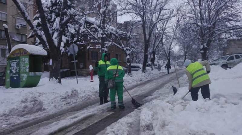 Пътните артерии, трасето на масовия градски транспорт, както и участъци около детски и здравни заведения са обработени против заледяване.