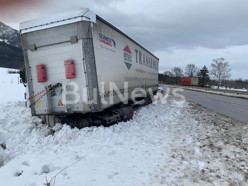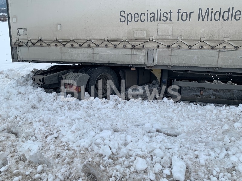 ТИР-ът е встрани от трасето и не пречи на преминаването по него.