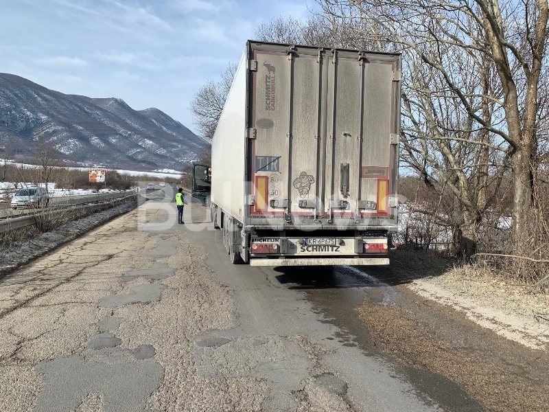 Катастрофа с полски ТИР затвори за кратко главен път Е-79 между Враца и Монтана, видя първо репортер на агенция BulNews.