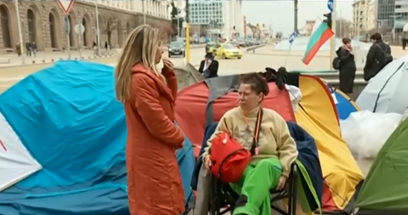 Протестите на медицинските сестри продължават. Те са издигнали палатков лагер пред сградата на бившия Партиен дом, който в момента се ползва от Народното събрание.