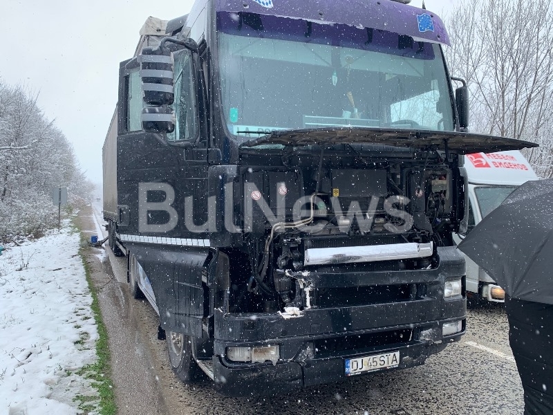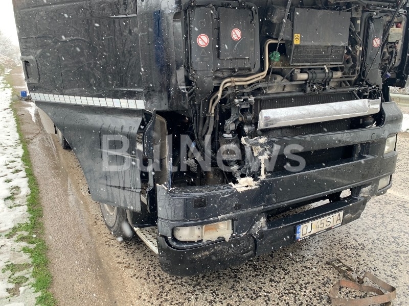 Има нанесени щети и по двата камиона, като по-сериозни са по предната част на румънският ТИР.
