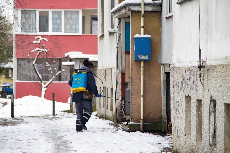По график до края на седмицата ще бъдат обработени със специален разтвор общите части на всички сгради в режим на етажна собственост - входове, стълбища, асансьори, мазета и др., както и околоблоковите пространства.