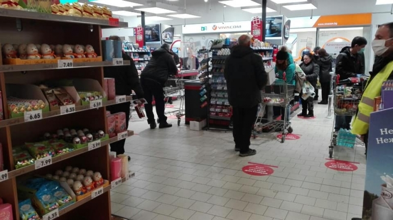 Инспекцията е установила, че в обекта не е спазено изискването за недопускане струпването на клиенти, като не се спазва и дистанцията от 1.5 метра на касите.