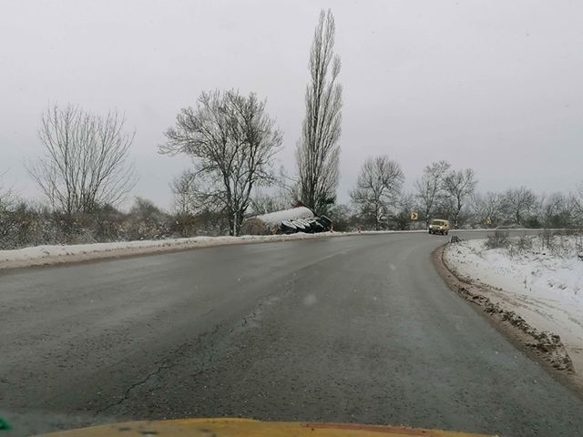 Жертва на снега! Цистерна се обърна на Е-79 между Видин и Монтана /снимки/
