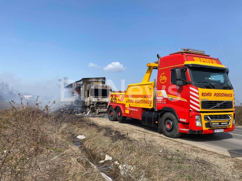 На мястото на инцидента има специализиран техника, която ще изтегли опожарения камион от асфалта, след което трафикът ще се нормализира.
