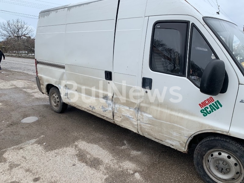 Цялата дясна долна част на буса е изкривена, а леката кола е със сериозни материални щети в предната част. За щастие при инцидента няма пострадали хора.